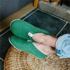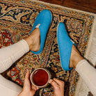 The slipper are hand-felted in one piece without any stitching. The advantage of these kind of slippers is that with the time, your feel will continue to felt the slippers and they will take the shape of your feet.