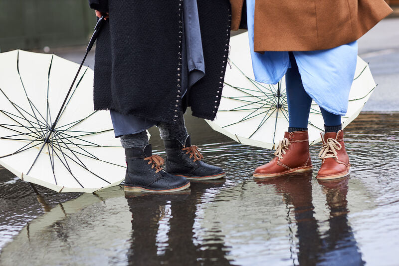 If your shoes get wet Store your shoes in a dry and airy place. If your shoes become wet, fill them with crumpled newspaper and let them air-dry. When they are completely dried, you can again apply leather conditioner or shoe cream. Leather shoes should not be dried on a radiator – the leather becomes dried out and porous. If the leather gets water stains, take a cloth and make the whole shoe slightly damp. Treat the leather afterwards as described above. It is best to change your shoes daily. Give your Duckfeet a day’s rest, so they can release the foot’s moisture and dry thoroughly. |
