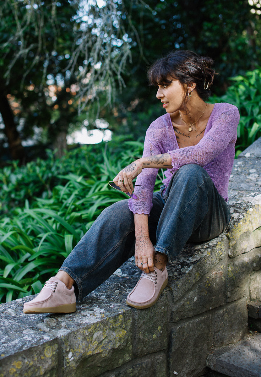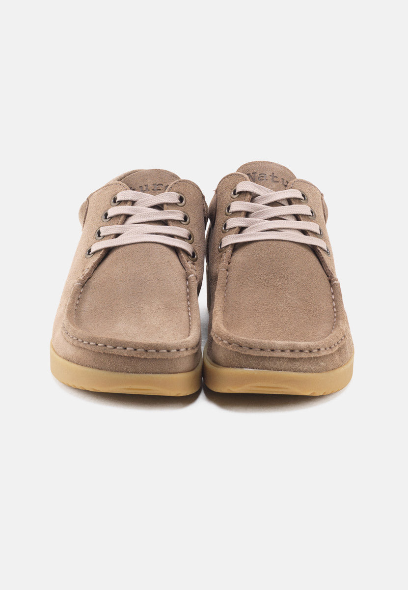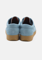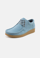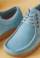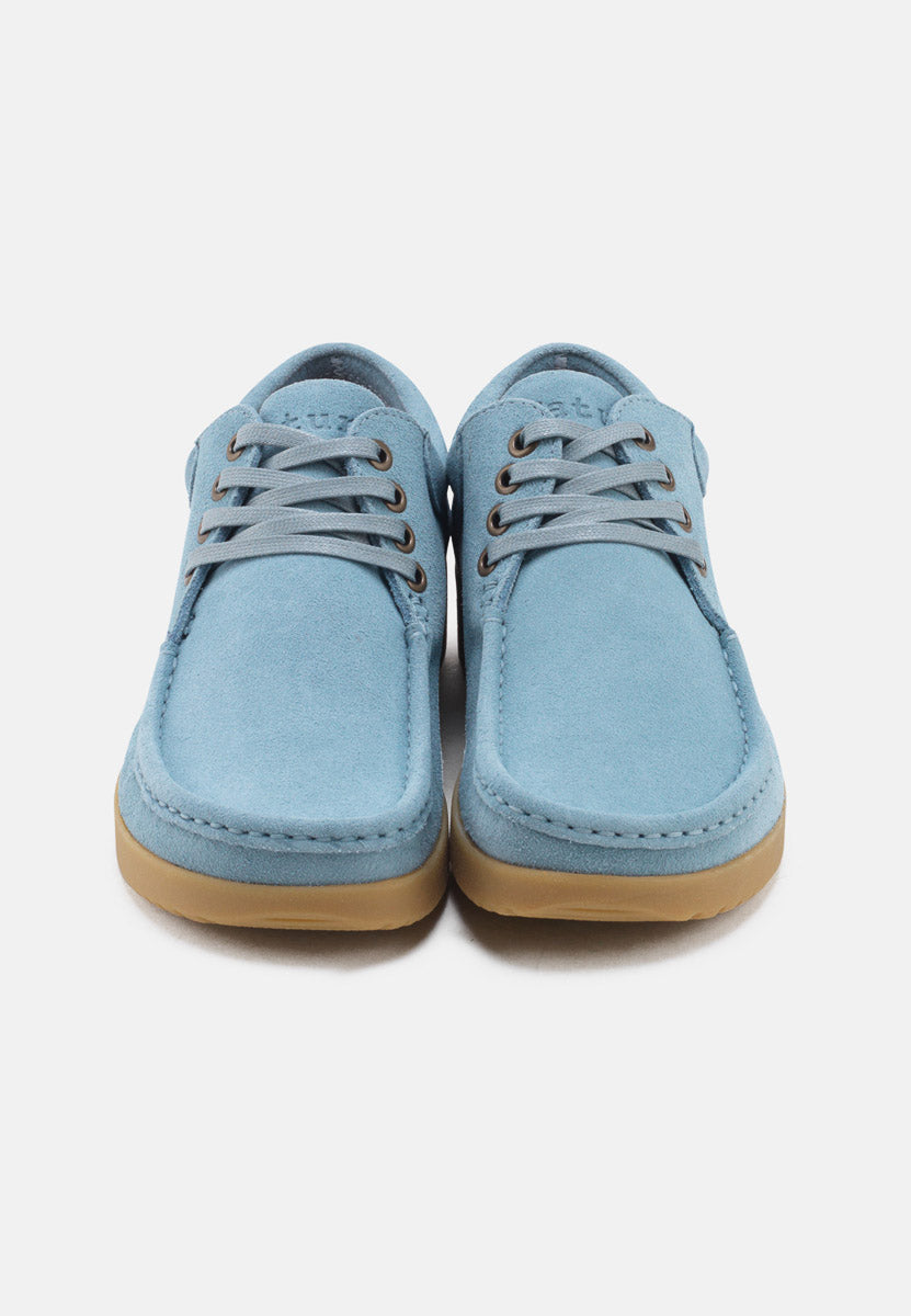 Crafted from soft suede leather in Sky, Moonrock, or Light Rose, each pair is treated with a water-repellent finish and molds naturally to your foot for a personalised fit. The 4-eyelet lace system with waxed cotton laces makes adjustment simple, while nickel-free eyelets add durability and understated detail.
